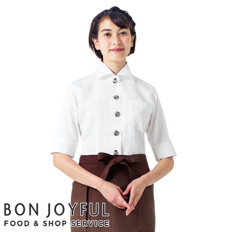 飲食店販売店制服 透けない白 七分袖ブラウス 女性用 防透 防汚 吸汗速乾など多機能 飲食店ユニフォーム通販 販売専門店 フードユニ Food Uni